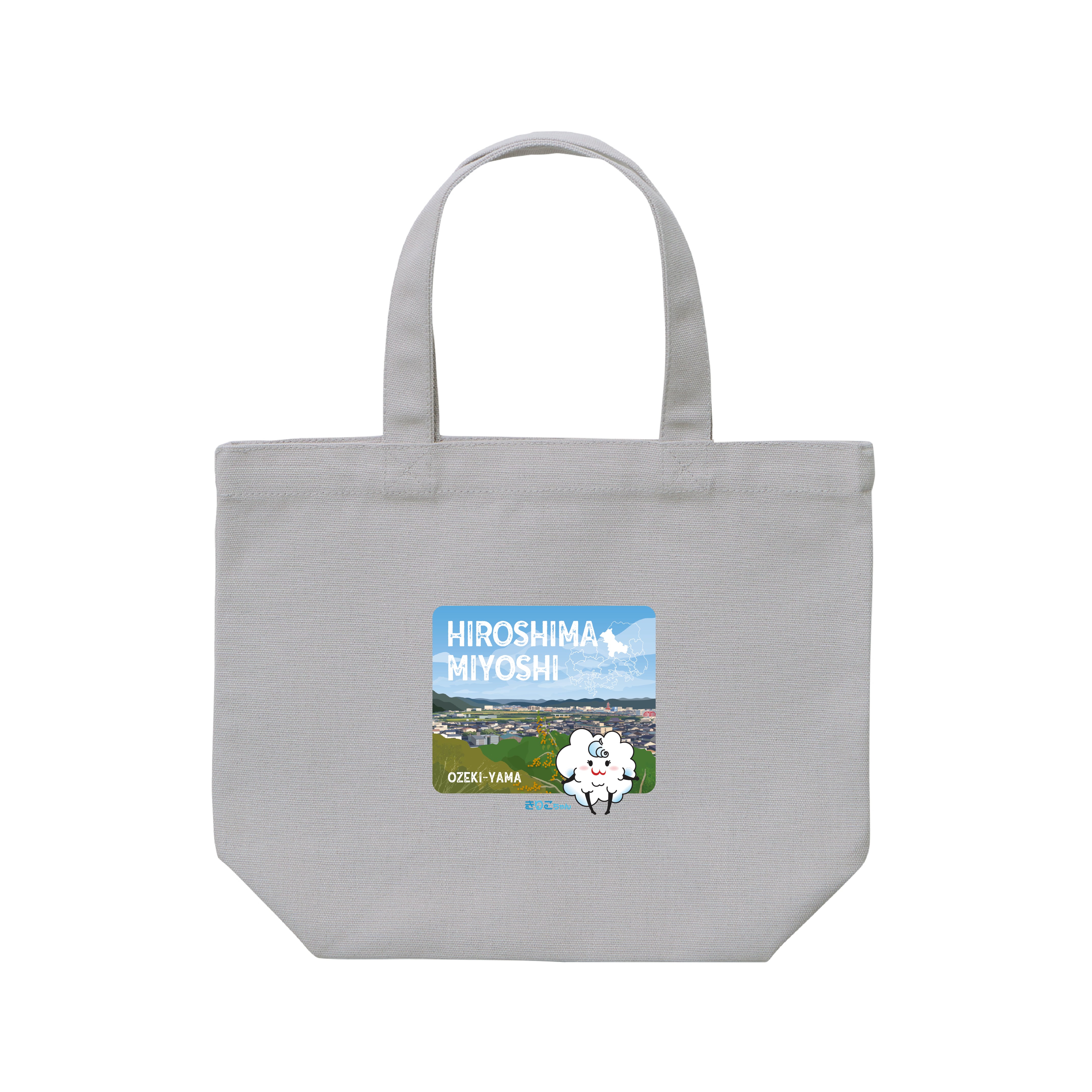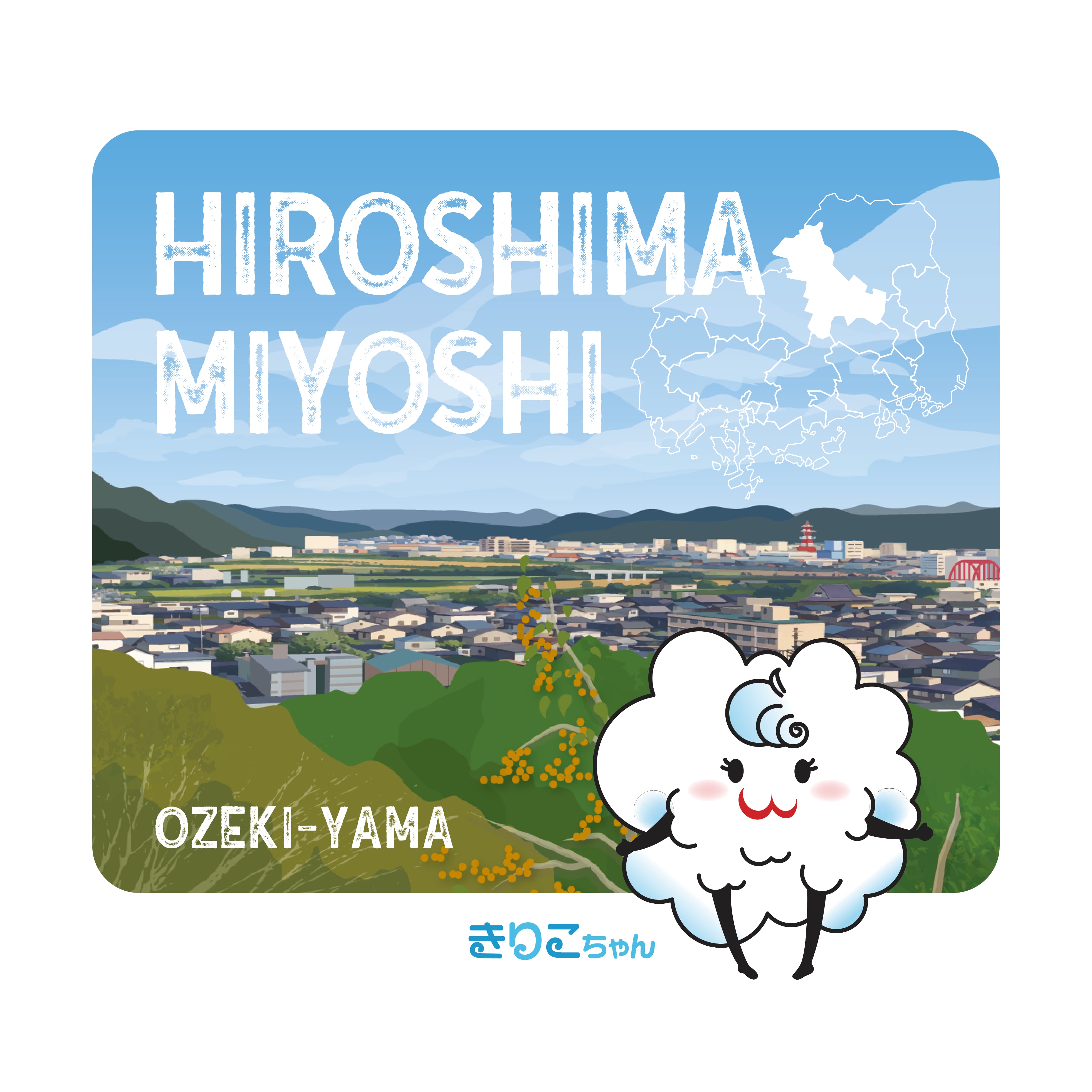 尾関山からの三次の風景に、きりこちゃんがふんわりと寄り添う可愛らしいデザインに仕上げました。